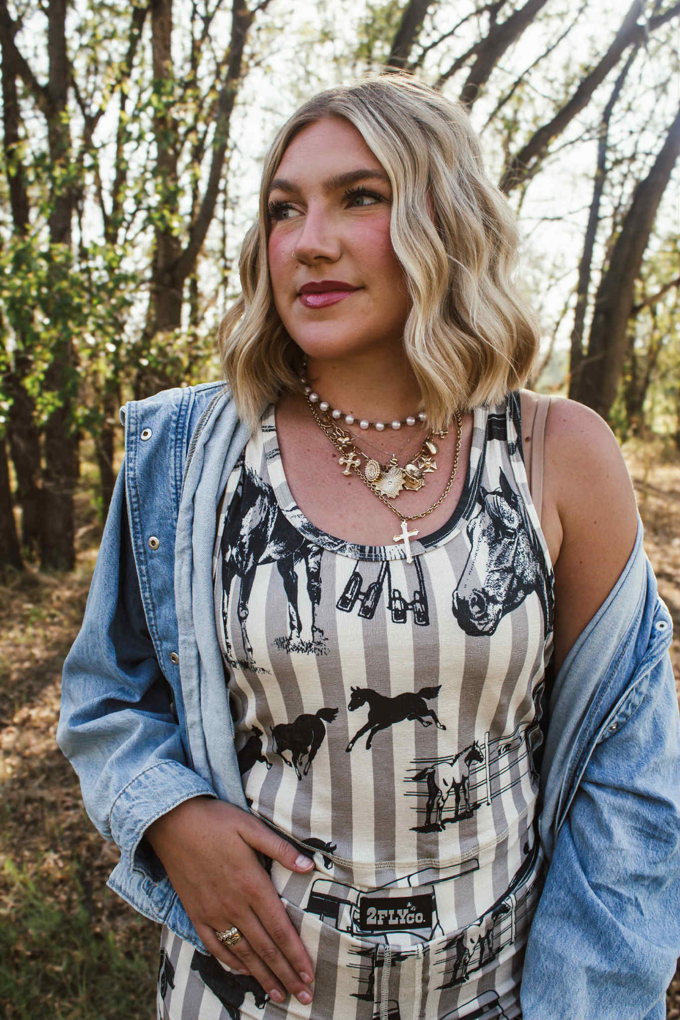 Flirty, fun, and Western-inspired—the 2Fly Western Prep Cropped Tank is a must-have for any cowgirl’s wardrobe. Designed with a partial lined interior for extra comfort and a cropped fit that hits just right, this tank is perfect for pairing with high-waisted denim or our favorite matching shorts. The soft cotton-poly blend keeps it breathable and lightweight, making it a go-to for warm days and layering year-round